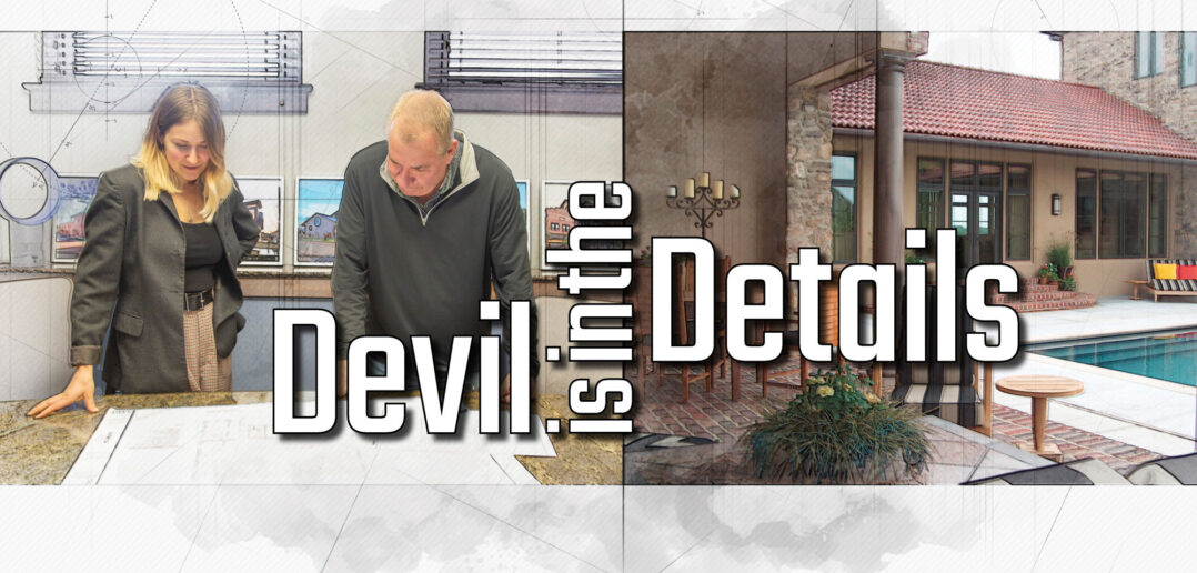 “I like it when clients have photos of what they like but, more specifically, what they like about that photo,” Buescher adds. “They might show me a Tudor house, and I’ll ask them, ‘Do you like the roof pitch, or is it the door that you like?’ And through conversation, we can get there.”
