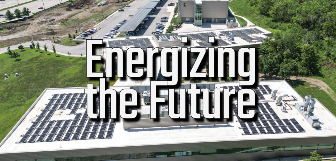 Cromwell Solar installation at KU Innovation Park on West Campus consisting of over 1000 solar panels across three rooftops and three carports. (Courtesy of Cromwell Solar)