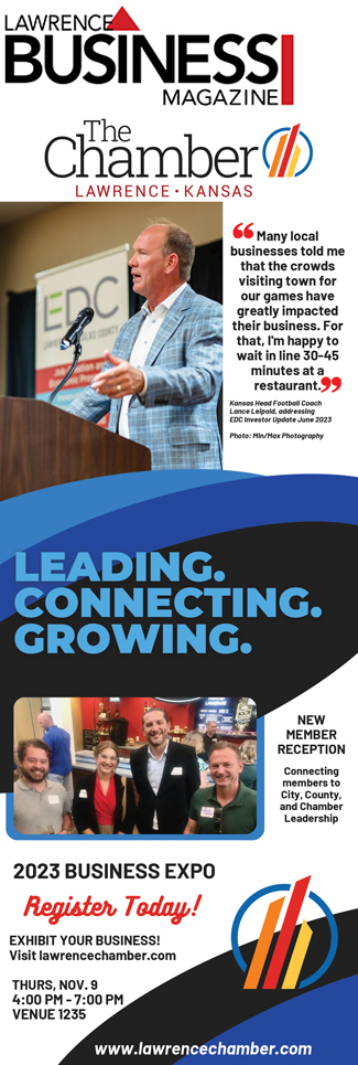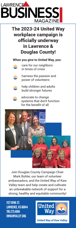 The Lawrence Business Magazine is the ONLY LOCAL MAGAZINE dedicated to telling the stories of people and businesses making a POSITIVE IMPACT on Lawrence & Douglas County, ADVOCATING for those businesses and people while only accepting advertisers with a stake in the local economy. We believe that to have a strong community you must be supported by businesses and people with a STAKE IN OUR COMMUNITY.